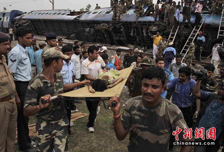 印度東部西孟加拉邦火車遇襲脫軌事故已經發生30多個小時,29日救援人員繼續在現場進行搜救工作。西孟加拉邦警察局長表示,截至目前已經發現110具尸體。同時仍有多達50人下落不明。圖為救援現場。