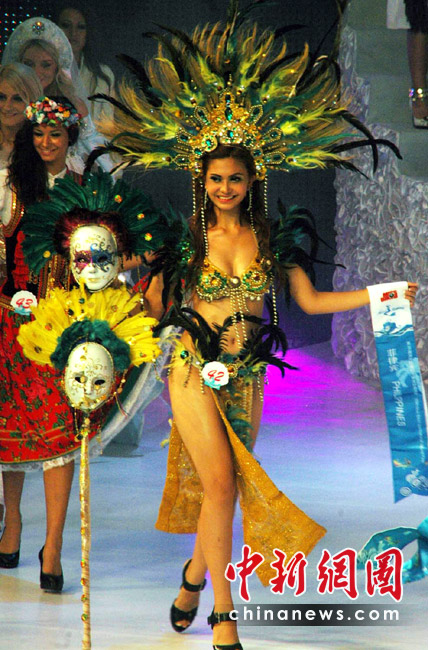 5月29日晚,第35屆國(guó)際比基尼小姐全球總決賽在三亞“美麗之冠”落下帷幕,22歲的羅馬尼亞選手Diana Irina Boanca摘得冠軍。總決賽還評(píng)選出了四季小姐,18歲的中國(guó)選手趙茜獲得“秋季小姐”,澳大利亞、委內(nèi)瑞拉和拉脫維亞選手分別獲得春、夏、冬季小姐。共有來(lái)自世界各地的64位佳麗參加了總決賽的角逐。當(dāng)晚,佳麗們展示了各自國(guó)家或地區(qū)特色的民族服飾,用不同的方式展示了不同風(fēng)格的比基尼“秀”,性感迷人。 中新社記者 尹海明攝