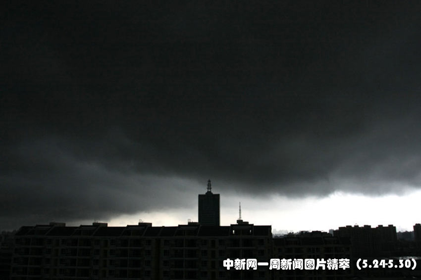 26(周三),一場暴風雨即將來臨前的海南海口天空烏云翻滾,出現“烏云壓城 城欲摧”景觀。張茂 攝