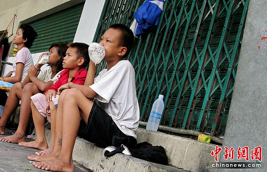 在泰國(guó)曼谷街頭,有一群孩子共同生活在Saparn Put(紀(jì)念大橋),他們的年齡在5至18歲之間。孩子們靠在寺廟門(mén)口賣(mài)花賺生活費(fèi)。圖片來(lái)源:CFP