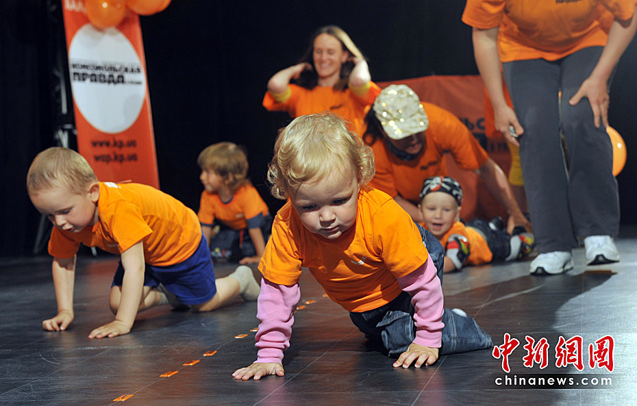 當(dāng)?shù)貢r(shí)間5月31日,烏克蘭基輔舉行了寶寶爬行大賽。數(shù)十名嬰兒在母親的鼓勵(lì)下奮力向4米外的終點(diǎn)爬去。圖片來源:中國(guó)新聞網(wǎng)