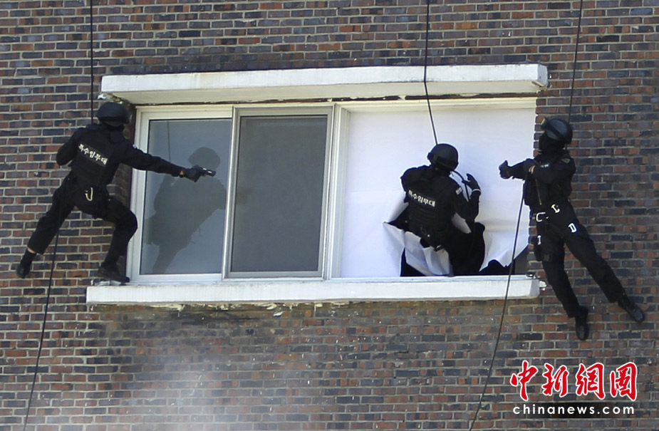 2010年6月1日,在韓國首爾,首爾防衛(wèi)部隊(duì)進(jìn)行了大型反恐軍事演練。