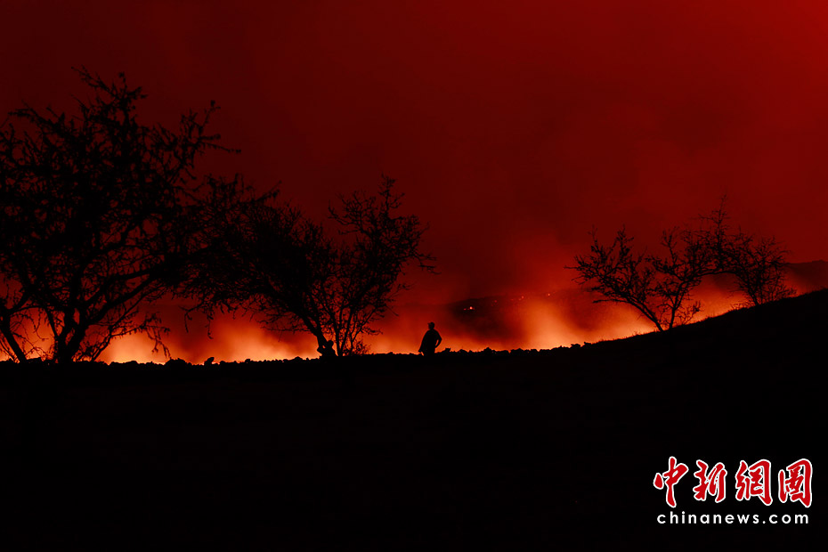 當(dāng)?shù)貢r(shí)間6月4日,危地馬拉帕卡亞火山噴發(fā),涌出大量熔巖,迫使周邊數(shù)千居民緊急疏散。圖片來源:中國(guó)新聞網(wǎng)