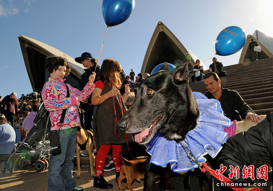 6月5日,澳大利亞悉尼歌劇院外舉辦了全球首場狗能聽懂的音樂會,約有1000人帶著數(shù)百只愛犬在劇院前庭和階梯落坐,聆聽“狗的音樂”,整場音樂會全長20分鐘。圖片來源:中國新聞網(wǎng)
