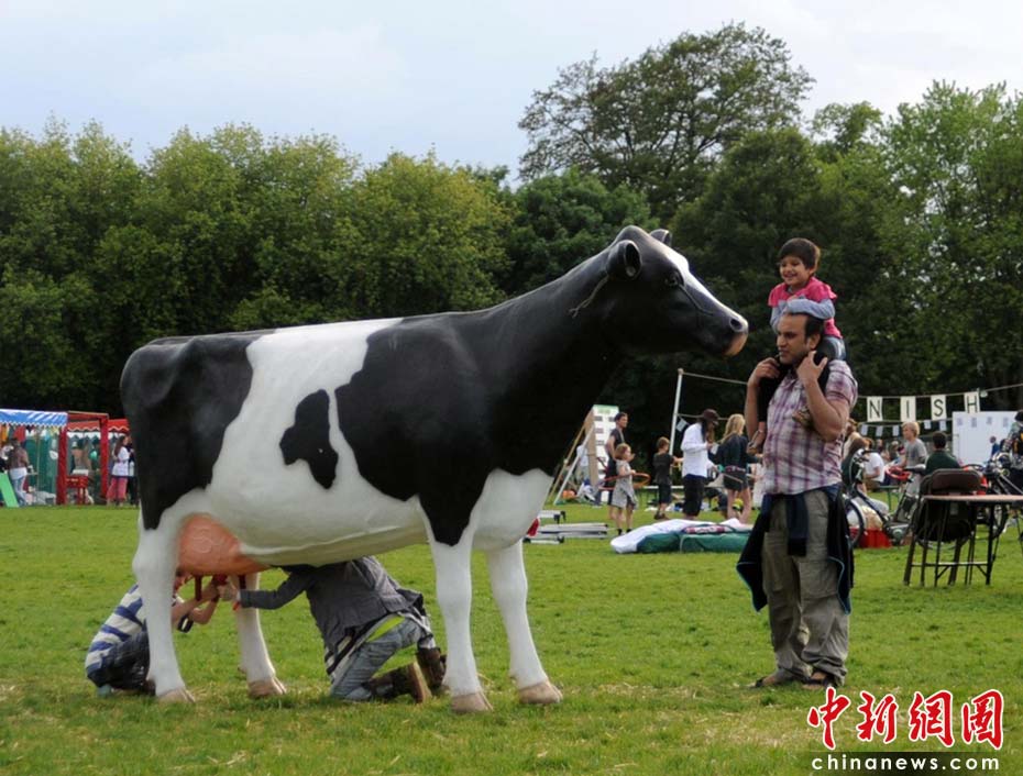 當地時間2010年6月6日,英國倫敦舉行卡姆登綠色市集(Camden Green Fair),這是英國倫敦每年環保領域的“重頭戲”。本屆市集的主旨是要喚起大眾對環境問題的關注,選擇更加可持續發展的生活方式。據活動主辦方預計,本屆市集將吸引來自英國各地和世界各國的2萬多人參加。圖為人們在一個奶牛模型旁體驗“手工擠牛奶”的樂趣。Fiona/攝 Fiona 馬小剛/文