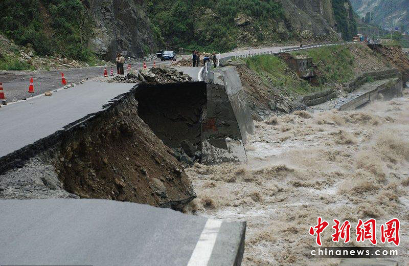 連日強降雨致使四川阿壩州茂縣岷江河水位不斷上漲,5月7日晚,213國道茂縣段一段路基被洪水沖毀約100米,這一路段徹底中斷,這已經是這條有著“震中生命線”之稱的國道,在近期內的第二次中斷。