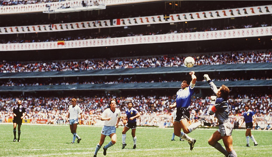 1986年世界杯原定在哥倫比亞舉辦,由于政局不穩(wěn)改由墨西哥承辦。雖然世界杯前遭遇大地震導致2萬人喪生,但這并未影響墨西哥人舉辦一屆出色的世界杯。1986年世界杯屬于馬拉多納,本屆大賽的7場比賽中,阿根廷隊共打進14個進球,馬拉多納攻入5球、助攻5次,他帶領(lǐng)阿根廷隊在淘汰賽里先后擊敗烏拉圭、英格蘭、比利時和西德隊最終奪冠。重要的是,迭戈在與英格蘭的比賽里留下了“上帝之手”和“千里走單騎”,這是讓人永遠無法忘記的經(jīng)典中的經(jīng)典。