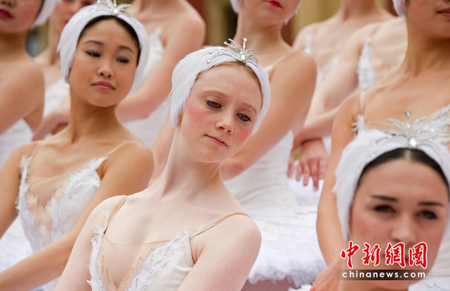 60名芭蕾演員倫敦街頭跳“小天鵝”