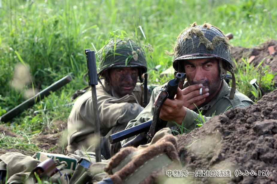 6月5日,諾曼底登陸66周年前夕,一批演員身著二戰(zhàn)時期美軍軍服,在法國諾曼底卡倫坦重現(xiàn)了這次著名的戰(zhàn)役。圖片來源:中國新聞網>>點擊觀看詳細內容