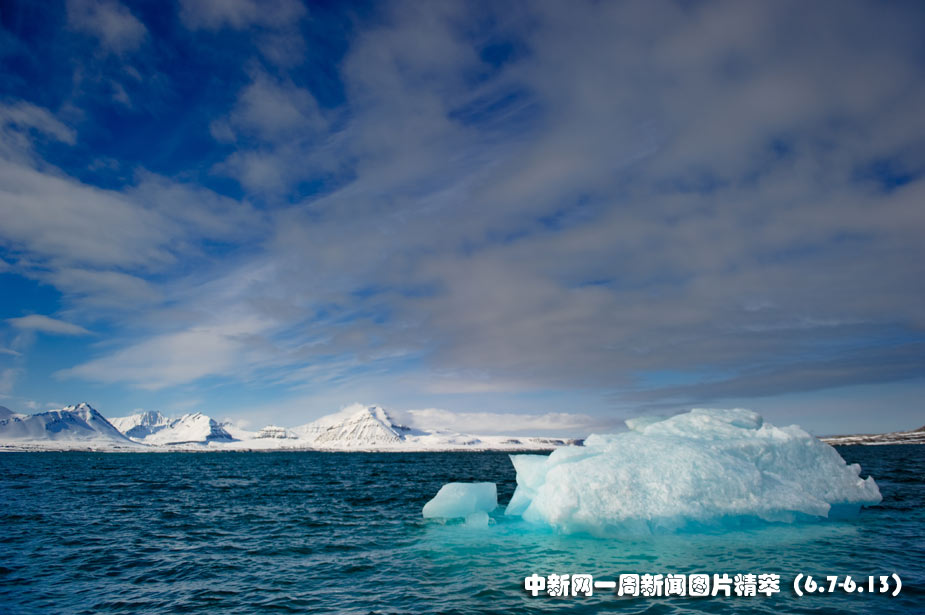 近日拍攝的挪威新奧勒松海岸的冰山。