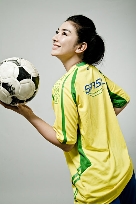 近日,黃奕身穿巴西隊(duì)球衣拍攝了一組世界杯足球?qū)懻妫瑸槟戏鞘澜绫炔省?/p>