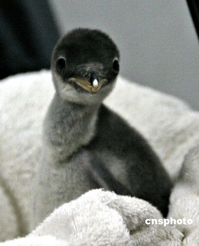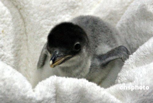 2008年1月2日上午,哈爾濱極地館里的企鵝小寶寶出生已滿10天。由于小寶寶是個“早產兒”,之前企鵝蛋又受過傷,因此所有人都迫切想知道小寶寶到底健不健康。今天經過專家對它進行全面的體檢,測得體重近400克,毛色良好屬于“健康寶寶”。中新社發 姚庭山 攝