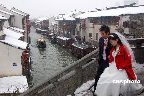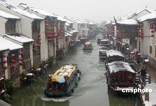 1月27日,蘇州迎來了今年以來的最大范圍的強降雪天氣,雖說給市民的出行帶來不便,但古色古香的山塘街也被白雪包裹,呈現出一種幽靜安寧的景色,吸引了大批的游客前來觀賞。中新社發 邱勇 攝