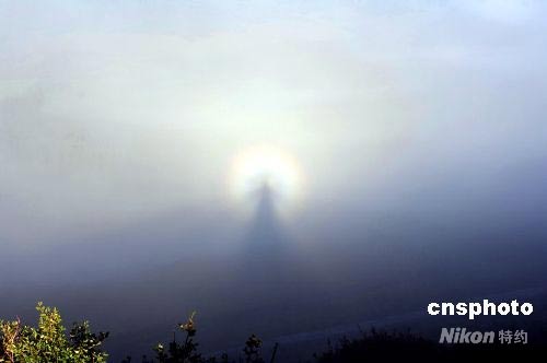 7月8日早晨,新疆喀納斯景區上空出現大片云霧,在陽光的直射下,出現了罕見的“佛光”奇觀。喀納斯景區位于新疆西北部,北與哈薩克斯坦、俄羅斯、蒙古交界。神秘的湖怪、令人費解的枯木長堤、暗藏水下的湖底森林、以及奇異壯觀的云海“佛光”是新疆喀納斯景區最著名的“四大奇觀”。中新社發 康劍 攝