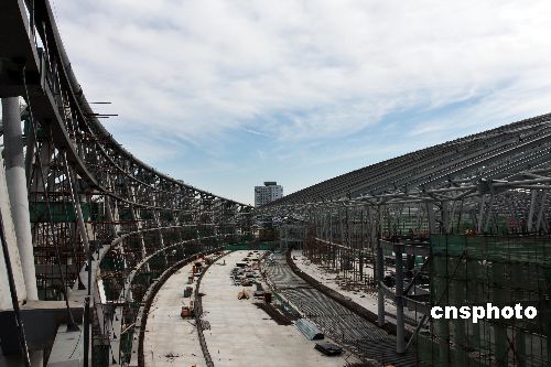 10月18日,新北京南站的鋼架結構以基本完成,再戰(zhàn)百天以確保年底第四階段的攻堅目標得以實現(xiàn)。中新社發(fā) 鄭雄增 攝