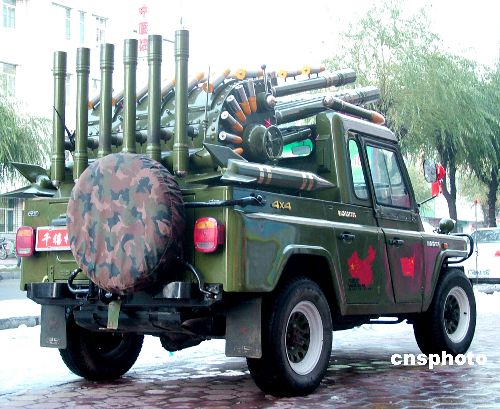 10月21日,一輛酷似軍用戰車的“禮炮車”出現在黑龍江小鎮。當日,黑龍江省牡丹江地區的穆棱市八面通鎮上,一家婚慶禮儀公司推出婚慶“禮炮車”服務項目,頗讓生活在小鎮上的居民感到新鮮。中新社發 莊文斌 攝