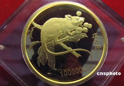 10月26日,由中國(guó)金幣總公司等單位主辦的“2007北京國(guó)際錢幣博覽會(huì)”在北京中國(guó)國(guó)際貿(mào)易中心開(kāi)幕。博覽會(huì)展出了中國(guó)人民銀行于2007年10月23日發(fā)行的2008中國(guó)戊子(鼠)年金銀紀(jì)念幣一套。其中10公斤(鼠)圓形金質(zhì)紀(jì)念幣,含純金10公斤,直徑180毫米,面額100000元,成色99.9%,最大發(fā)行量?jī)H僅18枚。據(jù)介紹,這枚10公斤金幣售價(jià)遠(yuǎn)遠(yuǎn)高于面值。中新社發(fā) 鄒憲 攝
