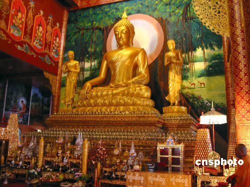 十一月三日上午,來自中國以及東南亞各國的一百零八位佛教界高僧大德,在位于西雙版納州景洪市,共同為新近落成的中國最大的南傳佛教寺院勐泐大佛寺開光,近萬名中外賓客和信眾前往觀禮。中新社發(fā) 甘娜 攝