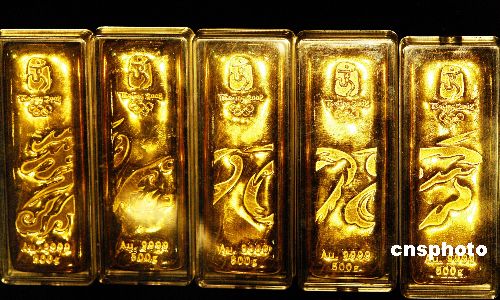 2007年11月10日,北京金博會(huì)上的全套“北京奧運(yùn)金”本色系列組合成一條完整的龍亮相。據(jù)稱“龍尾”奧運(yùn)金條將在本月陸續(xù)在全國上市。“北京奧運(yùn)金”是世界上第一套具有奧運(yùn)概念的紀(jì)念金條,其每組的含金量均為99.99%,按重量分為50克、100克、500克和1000克四種規(guī)格,每組限量發(fā)行2008公斤。中新社發(fā) 馬健 攝