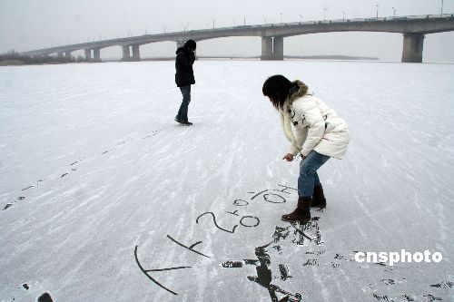 11月19日零時(shí),黑龍江哈爾濱氣溫驟降,松花江段全面封江。當(dāng)日13時(shí),當(dāng)?shù)赜瓉淼谝粓?chǎng)雪。中新社發(fā) 姚庭山 攝