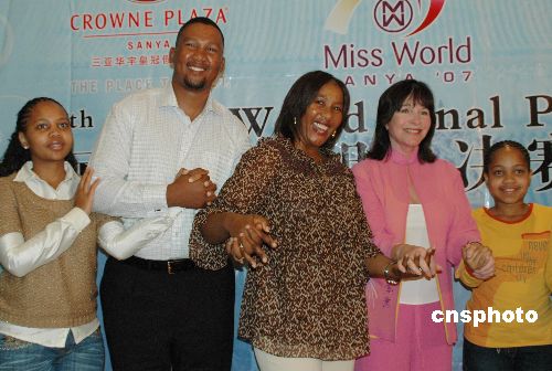 十一月二十九日,海南三亞,南非前總統(tǒng)曼德拉的長(zhǎng)女(中)長(zhǎng)孫(左二)現(xiàn)身海南三亞,在世界小姐機(jī)構(gòu)舉行的新聞發(fā)布會(huì)(右二為世界小姐機(jī)構(gòu)主席莫莉夫人)上呼吁更多的人關(guān)注艾滋病在全球的蔓延、關(guān)愛艾滋病患者。他們此行還帶來(lái)了家鄉(xiāng)的兒童合唱團(tuán),將于十二月一日晚舉行的第五十七屆世界小姐總決賽晚會(huì)上亮相。中新社發(fā) 尹海明 攝