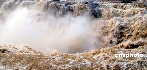 12月5日,黃河壺口瀑布迎來(lái)今年入冬后的第二個(gè)冬汛,雖然天氣很冷,還沒(méi)有出現(xiàn)冰掛,但水的氣勢(shì)很大,瀑布很壯觀,許多游人都趕來(lái)欣賞這壯觀的景象。中新社發(fā) 張旦 攝