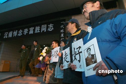 12月9日,八一體工大隊隊長李富勝的追悼會在八寶山舉行,中國足壇及社會各界人士紛紛前來悼念這位中國足球歷史上的“鐵門”。李富勝作為20世紀80年代初期中國國家隊的主力門將,被廣大球迷稱為“鐵門”。中新社發 富田 攝