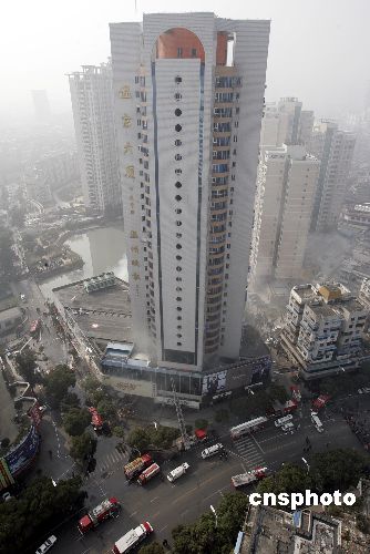 12月12日8時20分,浙江省溫州市中心人民路的溫富大廈發生大火,樓內有數百人被困,21人在火災中死亡。截至下午3時,現場救出113人,疏散98人,所有被圍困在樓內的居民都已獲解救,大火已撲滅。中新社發 回城 攝