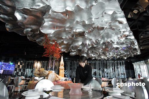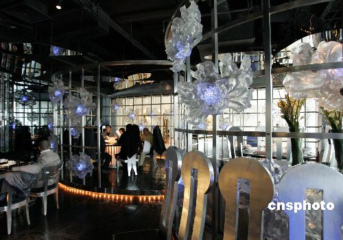 1月2日,坐落在上海時尚商圈地標“恒隆廣場”內的“TMSK牡丹66”餐廳,因環境新穎別致,受到時尚人士青睞。該餐廳為臺灣影后、“琉璃藝術家”楊惠姍在上海的又一力作,它讓食客在享用美味佳肴時,感受到琉璃光影的摩登以及獨有的“透明思考”。中新社發 潘索菲 攝