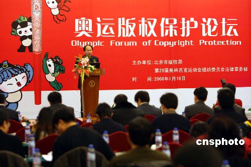 一月十六日,由北京市版權局、北京奧組委共同組織的“奧運版權保護論壇”在北京舉行。這是新年伊始,由政府管理部門組織的第一個以奧運版權保護為主題的大型宣傳活動。中新社發 任海霞 攝