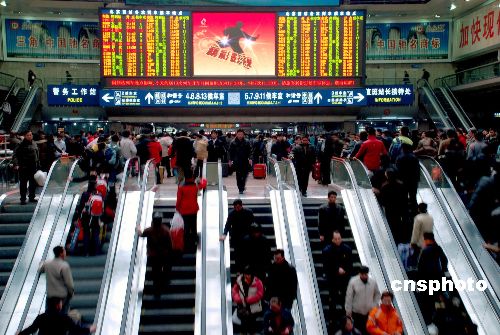 1月20日,北京西客站的候車室和候車大廳里擠滿了準備回家過年的旅客。從1月18日開始,2008年中國鐵路春運提前啟動以來,北京西客站等火車站迎來春運高峰。中新社發 楊慧峰 攝
