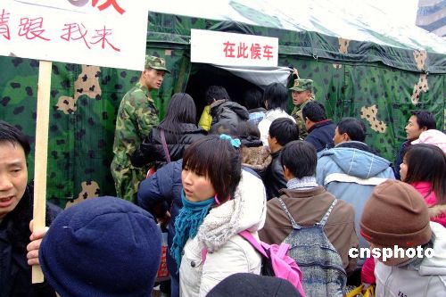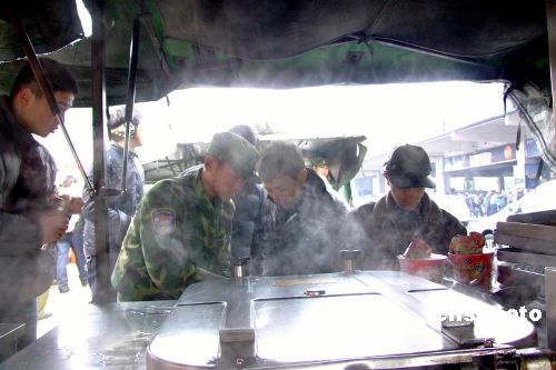 圖:南京軍區(qū)官兵在火車(chē)站搭設(shè)的“野戰(zhàn)帳篷”
