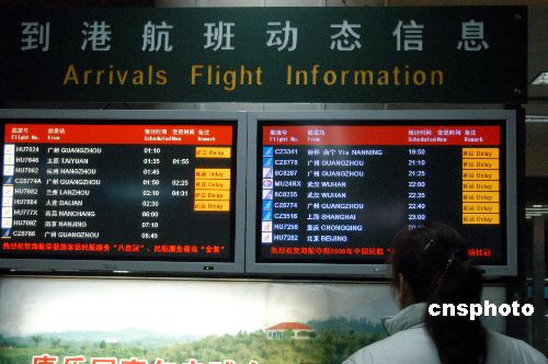 1月30日,因受大雪影響而一度造成旅客滯留的海口美蘭機場,其進出港航班大部分恢復(fù)正常。中新社發(fā) 蒙鐘德 攝