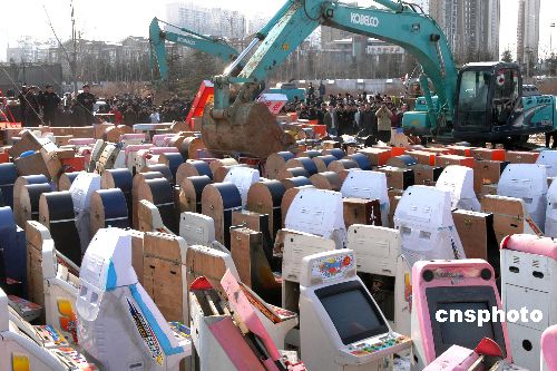 1月30日,中國農歷鼠年春節前夕,河南洛陽警方公開銷毀2367臺游戲賭博機。1月下旬,河南省洛陽警方開展“利劍一號”行動,嚴厲打擊利用電子游戲機賭博違法犯罪活動,此次行動中查處利用游戲機違法賭博場所156家。
