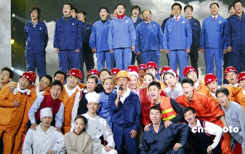 1月30日晚,中央電視臺(tái)2008春節(jié)聯(lián)歡晚會(huì)節(jié)目彩排在一號(hào)演播大廳進(jìn)行,由于南方持續(xù)大雪災(zāi)情嚴(yán)重,節(jié)目組臨時(shí)決定加入慰問受災(zāi)地區(qū)的內(nèi)容,而先前安排的一些節(jié)目不得不合并,甚至被取消。而原本就備受關(guān)注的《農(nóng)民工之歌》,在此次南方經(jīng)歷雪災(zāi)之后,顯得越發(fā)契合春晚的主題和氣氛。 中新社發(fā) 楊可佳 攝