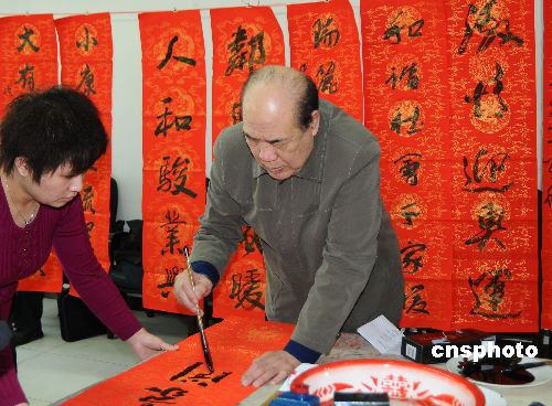 圖:著名書法家親自為農民書寫春聯