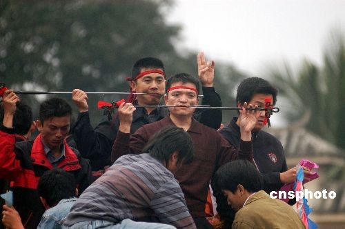 2008年2月16日,瓊海市,祈求五谷豐登,風調(diào)雨順。“軍坡”是海南民間的一個傳統(tǒng)節(jié)日,相傳源于唐代,為紀念六世紀我國嶺南著名俚人首領冼夫人而舉行的祭祀活動,距今已有1300多年歷史。獨特的民俗風情吸引了大批游客。中新社發(fā) 蒙鐘德 攝