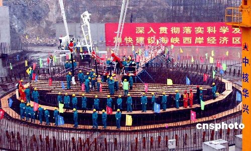 2月18日,福建寧德核電站的工程技術人員在該核電站1號核島進行有關項目澆注施工。同時,福建寧德核電站開工儀式在福建省寧德福鼎市秦嶼鎮備灣隆重舉行,這是福建有史以來的最大能源投資項目。中新社發 劉可耕 攝