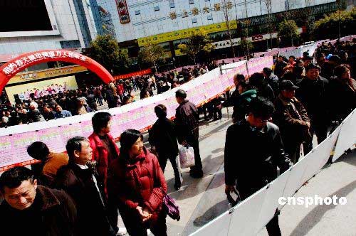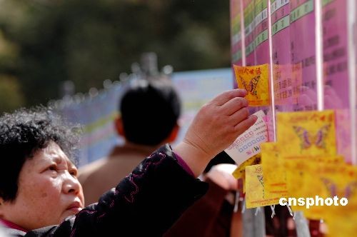 3月2日,江蘇鎮江市大市口廣場舉辦了“萬人相親”會活動,1000多個相親簡歷吸引了眾多市民。中新社發 陶春 攝