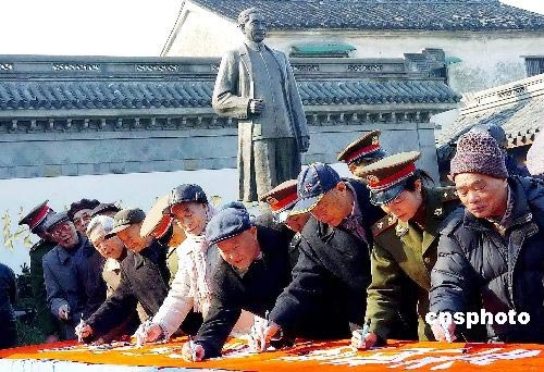 3月4日,浙江紹興市各界和杭州市的1000多名干部群眾、解放軍官兵來到紹興周恩來紀念館舉行重溫入黨誓言,簽名學習總理風范紀念活動。3月5日是周恩來誕辰110周年。中新社發 袁云 攝