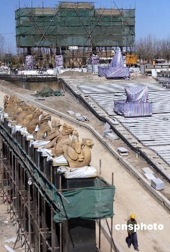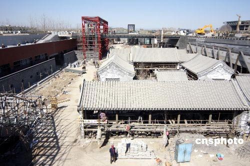 3月13日,極富中國特色的北京奧林匹克公園下沉花園初具規模。不久,一個充滿東方建筑韻味的院落組合將展現在人們面前。據悉,建成后的奧林匹克公園下沉花園將展現七個中國特色的院落。從紫禁城的紅墻,到北京的四合院,從歷經千年的鼓樂,到盛唐的馬球運動,在這里都有體現。中新社發 吳芒子 攝