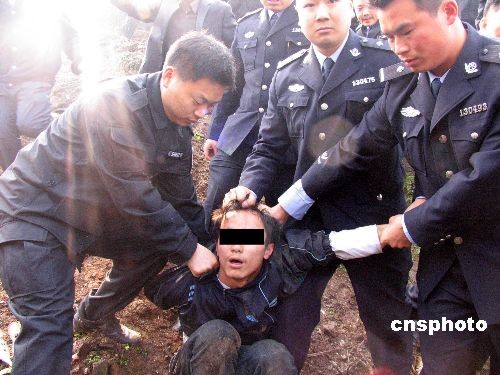 3月19日,婁底市公安局婁星分局民警抓獲殺害治安巡邏隊員譚靜宇的犯罪嫌疑人鐘倫慧。 中新社發(fā) 郭國權(quán) 攝