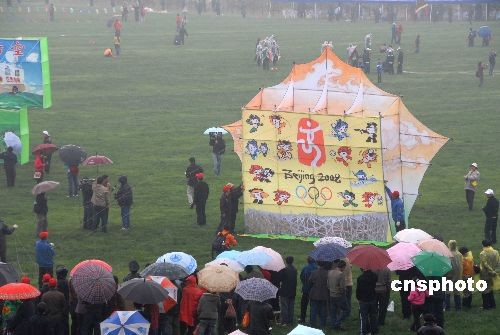 圖:濰坊萬人春雨中放風(fēng)箏迎奧運(yùn)