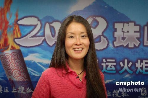 5月8日,世界第一位完成到達地球三極(南北極及珠峰)的華人女性——今典投資集團執行總裁王秋楊女士在搜狐北京總部演播室,為網民解說圣火上珠峰的首次網絡直播過程。她表示,北京奧運圣火實現了在世界最高峰的傳遞,也首次實現了網絡直播,這是百年奧運史上的一大創舉,也是北京奧運會獻給世界的禮物。中新社發 潘旭臨 攝