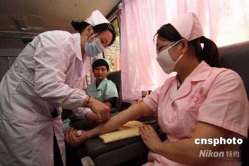 5月11日,湖南婁底市眼科醫院的護士在獻血。“5.12”國際護士節,婁底市眼科醫院、婁底口腔醫院、東方醫院的100多位護士,在節日前無償獻血。中新社發 郭國權 攝