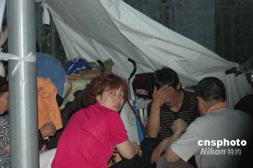 5月13日凌晨,在成都通往都江堰汶川的路上,不少民眾都在路邊搭建起了臨時的帳篷。中新社發 肖龍聯 攝