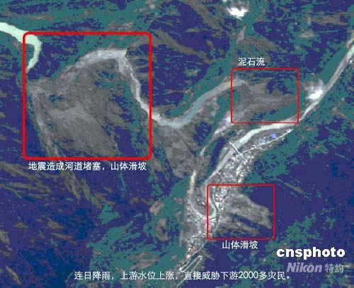 中國科學院遙感所所屬北京國遙萬維信息技術有限公司于14日接收到四川汶川地區(qū)最新高分辨率衛(wèi)星遙感影像數(shù)據(jù)以及5米雷達數(shù)據(jù)。國遙萬維根據(jù)NSPO及中國臺灣“國立”師范大學NUTU積極為國內(nèi)重大災情及時提供的原始影像數(shù)據(jù),截至5月15日凌晨,已經(jīng)完成北川東部、安縣北部真彩色衛(wèi)星影像圖的處理與分析,完成茂縣、什邡、都江堰及成都雷達衛(wèi)星影像采集與處理。以下是震前震后衛(wèi)星遙感數(shù)據(jù)對比分析,從圖中可清楚看到其中對比情況。中新社發(fā) 國遙萬維 攝