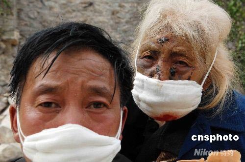 5月16日,在“5.12”大地震中遭到毀滅性重創的北川縣城,受災民眾在政府的幫助下紛紛撤離已成廢墟的家園。參加地震搶險的官兵仍在搜救其他被困的人。中新社發 陳文 攝