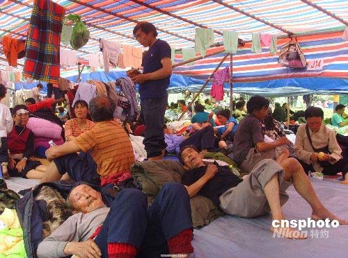 5月17日下午,綿陽市南河體育館災民安置點的災民情緒穩定。中新社發 霍潺 攝