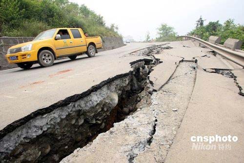 5月17日,通往汶川漩口鎮公路開通。圖為車輛小心通行。中新社發 張雷 攝